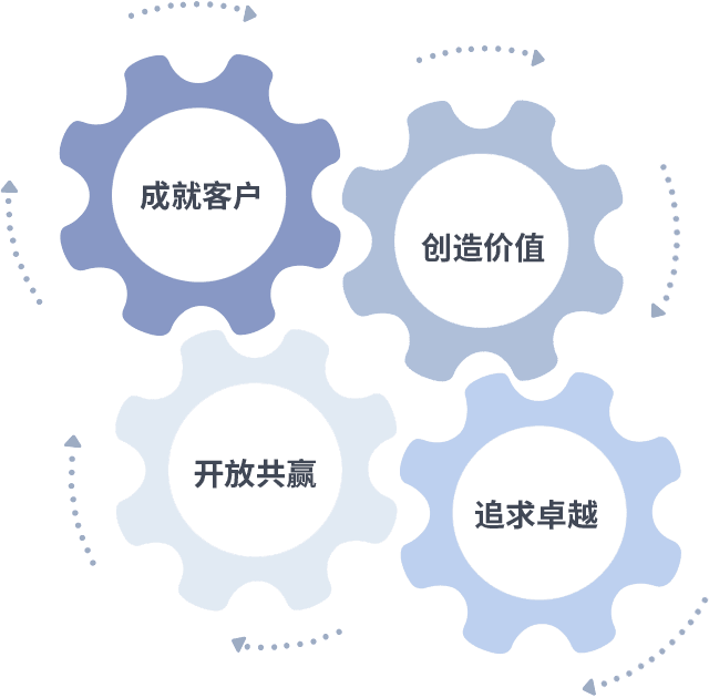 成就客户是一切决策的出发点,,,,创造价值是衡量所有工作的标准,,,追求卓越是40001百老汇做事做人的态度,,,,开放共赢是40001百老汇的格局也是最终的结果。。。。价值观的齿轮环环相扣,,推动着组织里的每个人不断向前。。